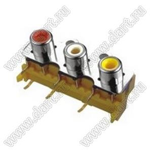 Каталог > Электронные компоненты, радиодетали > Разъёмы (соединители, переходники) > Разъемы аудио-видео > Разъемы RCA («тюльпан») > гнезда RCA > Блоки по три гнезда серии RCA "тюльпан" > RCA-314PB