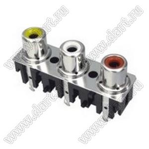 Каталог > Электронные компоненты, радиодетали > Разъёмы (соединители, переходники) > Разъемы аудио-видео > Разъемы RCA («тюльпан») > гнезда RCA > Блоки по три гнезда серии RCA "тюльпан" > RCA-316A-P