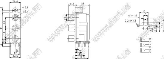 Каталог > Электронные компоненты, радиодетали > Разъёмы (соединители, переходники) > Разъемы аудио-видео > Разъемы RCA («тюльпан») > гнезда RCA > Блоки по три гнезда серии RCA "тюльпан" > RCA-317P
