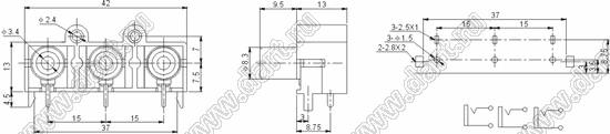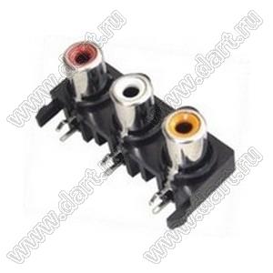 Каталог > Электронные компоненты, радиодетали > Разъёмы (соединители, переходники) > Разъемы аудио-видео > Разъемы RCA («тюльпан») > гнезда RCA > Блоки по три гнезда серии RCA "тюльпан" > RCA-319