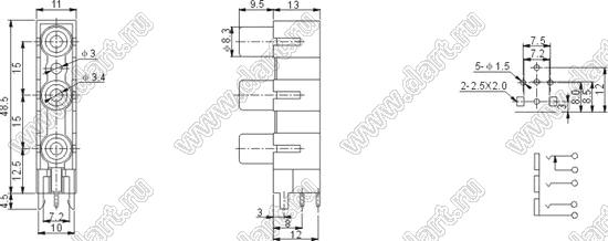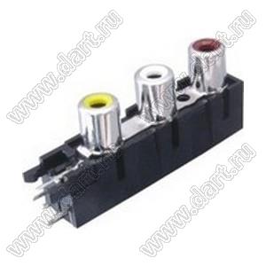 Каталог > Электронные компоненты, радиодетали > Разъёмы (соединители, переходники) > Разъемы аудио-видео > Разъемы RCA («тюльпан») > гнезда RCA > Блоки по три гнезда серии RCA "тюльпан" > RCA-322