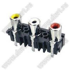 Каталог > Электронные компоненты, радиодетали > Разъёмы (соединители, переходники) > Разъемы аудио-видео > Разъемы RCA («тюльпан») > гнезда RCA > Блоки по три гнезда серии RCA "тюльпан" > RCA-323