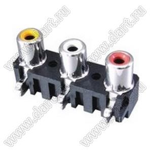 Каталог > Электронные компоненты, радиодетали > Разъёмы (соединители, переходники) > Разъемы аудио-видео > Разъемы RCA («тюльпан») > гнезда RCA > Блоки по три гнезда серии RCA "тюльпан" > RCA-325A