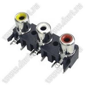 Каталог > Электронные компоненты, радиодетали > Разъёмы (соединители, переходники) > Разъемы аудио-видео > Разъемы RCA («тюльпан») > гнезда RCA > Блоки по три гнезда серии RCA "тюльпан" > RCA-325D