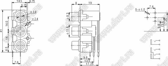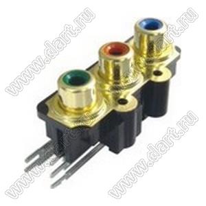 Каталог > Электронные компоненты, радиодетали > Разъёмы (соединители, переходники) > Разъемы аудио-видео > Разъемы RCA («тюльпан») > гнезда RCA > Блоки по три гнезда серии RCA "тюльпан" > RCA-326P