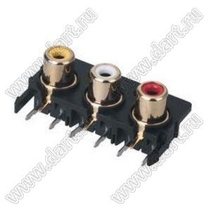 Каталог > Электронные компоненты, радиодетали > Разъёмы (соединители, переходники) > Разъемы аудио-видео > Разъемы RCA («тюльпан») > гнезда RCA > Блоки по три гнезда серии RCA "тюльпан" > RCA-328A