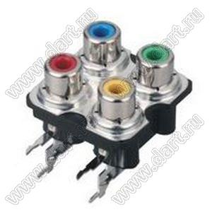 Каталог > Электронные компоненты, радиодетали > Разъёмы (соединители, переходники) > Разъемы аудио-видео > Разъемы RCA («тюльпан») > гнезда RCA > Блоки по четыре гнезда серии RCA "тюльпан" > RCA-407AS-P