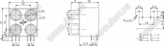 Каталог > Электронные компоненты, радиодетали > Разъёмы (соединители, переходники) > Разъемы аудио-видео > Разъемы RCA («тюльпан») > гнезда RCA > Блоки по четыре гнезда серии RCA "тюльпан" > RCA-407-FB