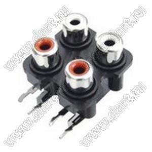 Каталог > Электронные компоненты, радиодетали > Разъёмы (соединители, переходники) > Разъемы аудио-видео > Разъемы RCA («тюльпан») > гнезда RCA > Блоки по четыре гнезда серии RCA "тюльпан" > RCA-407S