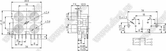 Каталог > Электронные компоненты, радиодетали > Разъёмы (соединители, переходники) > Разъемы аудио-видео > Разъемы RCA («тюльпан») > гнезда RCA > Блоки по четыре гнезда серии RCA "тюльпан" > RCA-409PH
