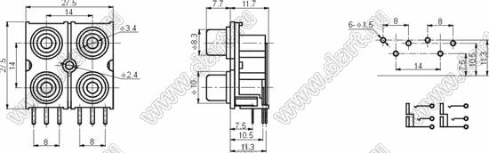 Каталог > Электронные компоненты, радиодетали > Разъёмы (соединители, переходники) > Разъемы аудио-видео > Разъемы RCA («тюльпан») > гнезда RCA > Блоки по четыре гнезда серии RCA "тюльпан" > RCA-410
