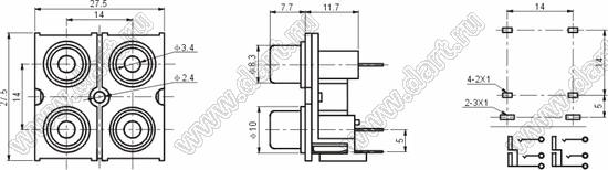 Каталог > Электронные компоненты, радиодетали > Разъёмы (соединители, переходники) > Разъемы аудио-видео > Разъемы RCA («тюльпан») > гнезда RCA > Блоки по четыре гнезда серии RCA "тюльпан" > RCA-410A
