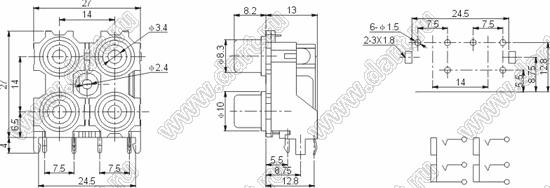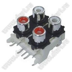 Каталог > Электронные компоненты, радиодетали > Разъёмы (соединители, переходники) > Разъемы аудио-видео > Разъемы RCA («тюльпан») > гнезда RCA > Блоки по четыре гнезда серии RCA "тюльпан" > RCA-413E