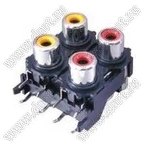 Каталог > Электронные компоненты, радиодетали > Разъёмы (соединители, переходники) > Разъемы аудио-видео > Разъемы RCA («тюльпан») > гнезда RCA > Блоки по четыре гнезда серии RCA "тюльпан" > RCA-413F