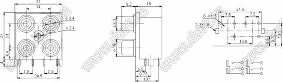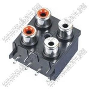 Каталог > Электронные компоненты, радиодетали > Разъёмы (соединители, переходники) > Разъемы аудио-видео > Разъемы RCA («тюльпан») > гнезда RCA > Блоки по четыре гнезда серии RCA "тюльпан" > RCA-413-FB