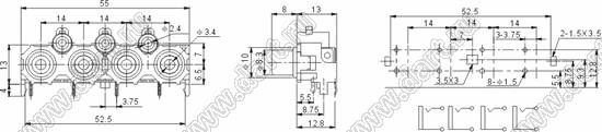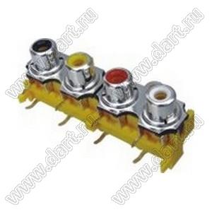 Каталог > Электронные компоненты, радиодетали > Разъёмы (соединители, переходники) > Разъемы аудио-видео > Разъемы RCA («тюльпан») > гнезда RCA > Блоки по четыре гнезда серии RCA "тюльпан" > RCA-414P