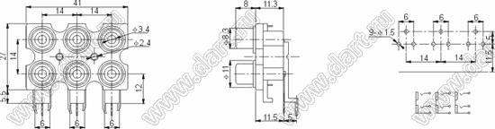 Каталог > Электронные компоненты, радиодетали > Разъёмы (соединители, переходники) > Разъемы аудио-видео > Разъемы RCA («тюльпан») > гнезда RCA > Блоки по шесть гнезд серии RCA "тюльпан" > RCA-602