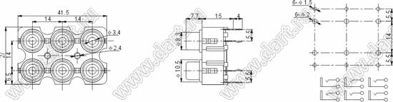 Каталог > Электронные компоненты, радиодетали > Разъёмы (соединители, переходники) > Разъемы аудио-видео > Разъемы RCA («тюльпан») > гнезда RCA > Блоки по шесть гнезд серии RCA "тюльпан" > RCA-606A