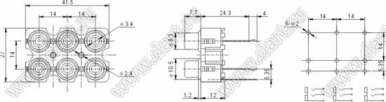 Каталог > Электронные компоненты, радиодетали > Разъёмы (соединители, переходники) > Разъемы аудио-видео > Разъемы RCA («тюльпан») > гнезда RCA > Блоки по шесть гнезд серии RCA "тюльпан" > RCA-606B