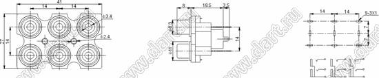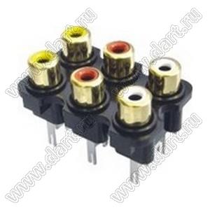 Каталог > Электронные компоненты, радиодетали > Разъёмы (соединители, переходники) > Разъемы аудио-видео > Разъемы RCA («тюльпан») > гнезда RCA > Блоки по шесть гнезд серии RCA "тюльпан" > RCA-607B