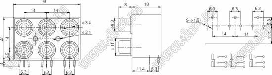 Каталог > Электронные компоненты, радиодетали > Разъёмы (соединители, переходники) > Разъемы аудио-видео > Разъемы RCA («тюльпан») > гнезда RCA > Блоки по шесть гнезд серии RCA "тюльпан" > RCA-607-FB