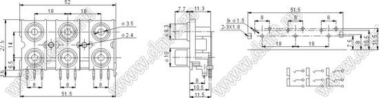 Каталог > Электронные компоненты, радиодетали > Разъёмы (соединители, переходники) > Разъемы аудио-видео > Разъемы RCA («тюльпан») > гнезда RCA > Блоки по шесть гнезд серии RCA "тюльпан" > RCA-609