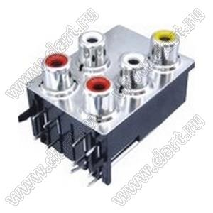 Каталог > Электронные компоненты, радиодетали > Разъёмы (соединители, переходники) > Разъемы аудио-видео > Разъемы RCA («тюльпан») > гнезда RCA > Блоки по шесть гнезд серии RCA "тюльпан" > RCA-617A-P