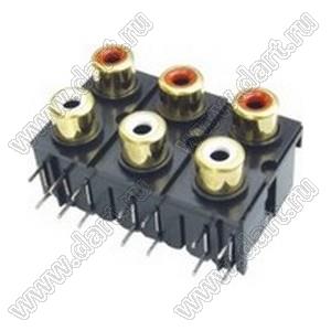 Каталог > Электронные компоненты, радиодетали > Разъёмы (соединители, переходники) > Разъемы аудио-видео > Разъемы RCA («тюльпан») > гнезда RCA > Блоки по шесть гнезд серии RCA "тюльпан" > RCA-618