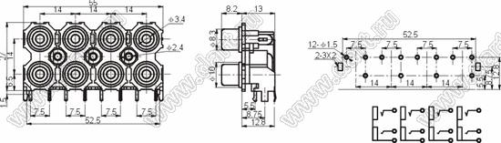 Каталог > Электронные компоненты, радиодетали > Разъёмы (соединители, переходники) > Разъемы аудио-видео > Разъемы RCA («тюльпан») > гнезда RCA > Блоки по восемь и более гнезд серии RCA "тюльпан" > RCA-813