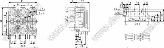 Каталог > Электронные компоненты, радиодетали > Разъёмы (соединители, переходники) > Разъемы аудио-видео > Разъемы RCA («тюльпан») > гнезда RCA > Блоки по восемь и более гнезд серии RCA "тюльпан" > RCA-913