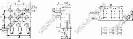 Каталог > Электронные компоненты, радиодетали > Разъёмы (соединители, переходники) > Разъемы аудио-видео > Разъемы RCA («тюльпан») > гнезда RCA > Блоки по восемь и более гнезд серии RCA "тюльпан" > RCA-917