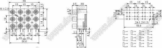 Каталог > Электронные компоненты, радиодетали > Разъёмы (соединители, переходники) > Разъемы аудио-видео > Разъемы RCA («тюльпан») > гнезда RCA > Блоки по восемь и более гнезд серии RCA "тюльпан" > RCA-1217