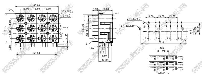 Каталог > Электронные компоненты, радиодетали > Разъёмы (соединители, переходники) > Разъемы аудио-видео > Разъемы RCA («тюльпан») > гнезда RCA > Блоки по восемь и более гнезд серии RCA "тюльпан" > RCA-1217P