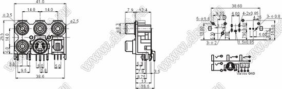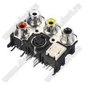 Каталог > Электронные компоненты, радиодетали > Разъёмы (соединители, переходники) > Разъемы аудио-видео > Разъемы RCA («тюльпан») > гнезда RCA > Блоки гнезд RCA "тюльпан" и мини-DIN > RW4-AS01C