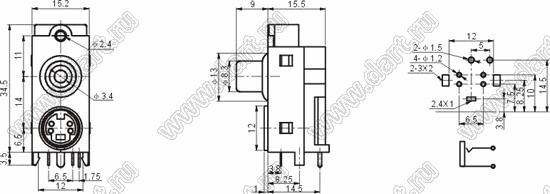 Каталог > Электронные компоненты, радиодетали > Разъёмы (соединители, переходники) > Разъемы аудио-видео > Разъемы RCA («тюльпан») > гнезда RCA > Блоки гнезд RCA "тюльпан" и мини-DIN > RW-D04