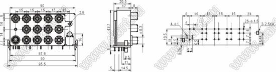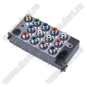 Каталог > Электронные компоненты, радиодетали > Разъёмы (соединители, переходники) > Разъемы аудио-видео > Разъемы RCA («тюльпан») > гнезда RCA > Блоки гнезд RCA "тюльпан" и мини-DIN > R13-AS01