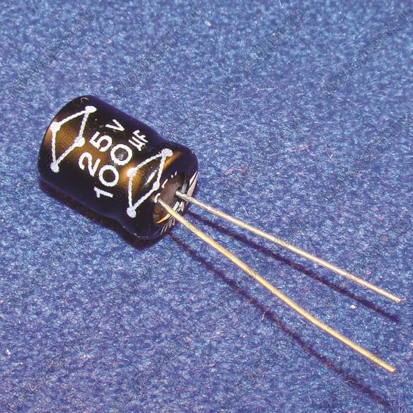 Каталог > Электронные компоненты, радиодетали > Конденсаторы > ECAP - конденсаторы алюминиевые электролитические радиальные > GR/GLR/TN серия > ECAP 100uF/25V 0611 105C GLR (LOW ESR)