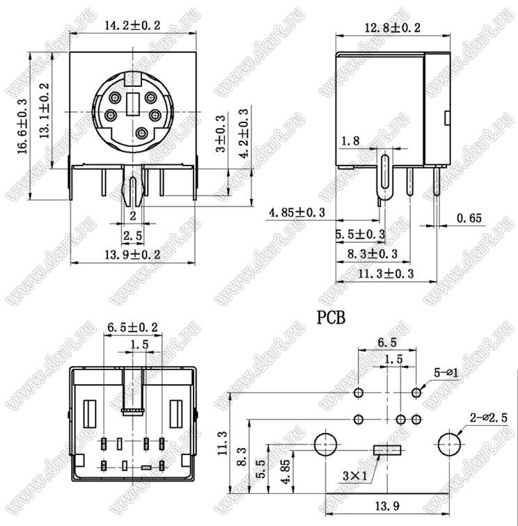 Каталог > Электронные компоненты, радиодетали > Разъёмы (соединители, переходники) > Разъемы DIN (мини) > Розетки мини-DIN на плату > MDC-5-03
