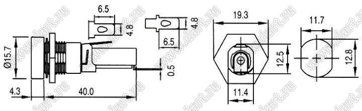 Каталог > Фурнитура для электронных устройств > Держатели предохранителей > Держатели предохранителей (плавких вставок) на панель > Держатели на панель для предохранителей (плавких вставок) 5x20 мм > HTB-32M (R3-9)