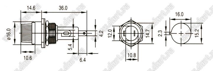 Каталог > Фурнитура для электронных устройств > Держатели предохранителей > Держатели предохранителей (плавких вставок) на панель > Держатели на панель для предохранителей (плавких вставок) 6х30 (6,3x32) мм > CQ-207HHC
