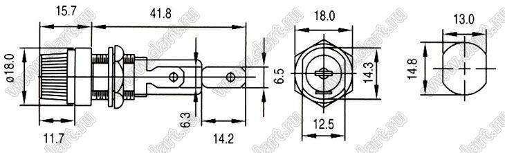 Каталог > Фурнитура для электронных устройств > Держатели предохранителей > Держатели предохранителей (плавких вставок) на панель > Держатели на панель для предохранителей (плавких вставок) 6х30 (6,3x32) мм > CQ-207HQC (R3-14C)