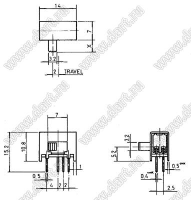 Каталог > Электронные компоненты, радиодетали > Переключатели, кнопки > Переключатели движковые (SLIDE) > Переключатели движковые (SLIDE) угловые > SK-23D01-G7