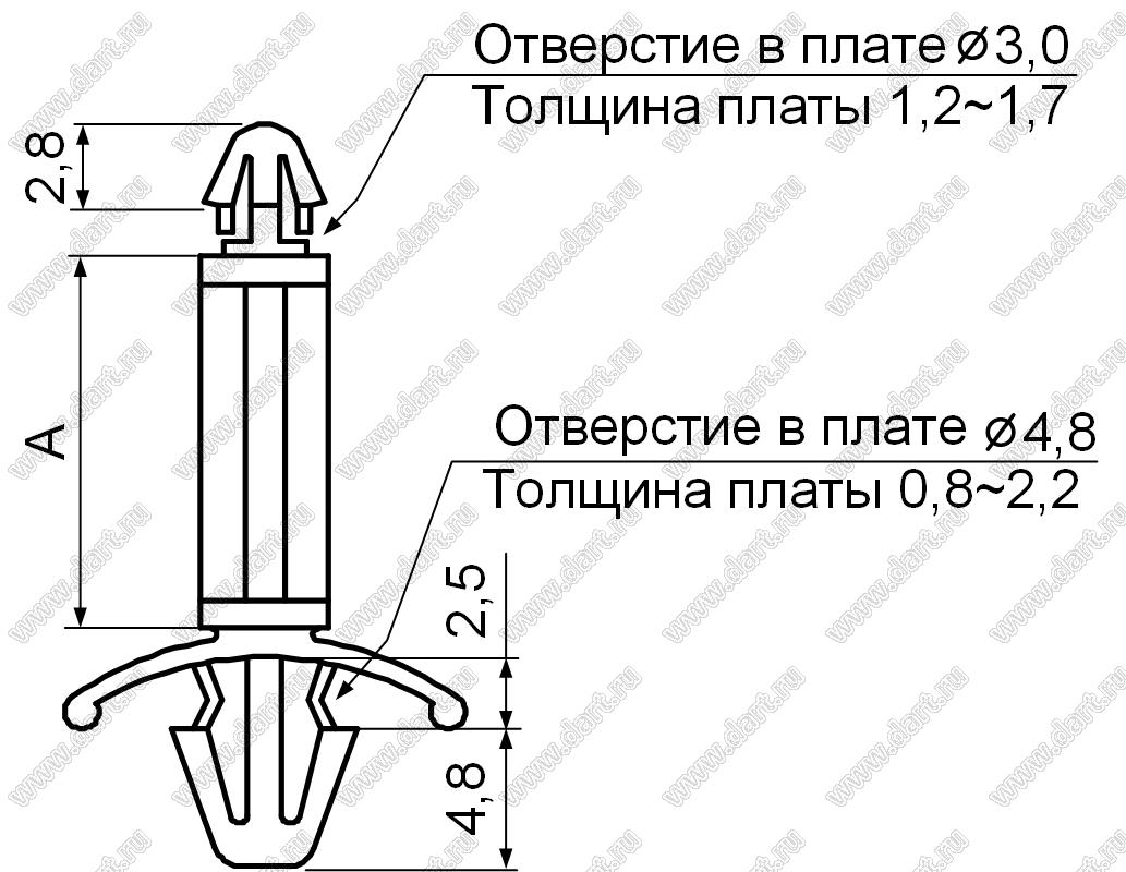 Каталог > Фурнитура для электронных устройств > Фиксаторы плат, стойки межплатные > Фиксаторы под круглое отверстие > Фиксаторы с двумя защелками > LCBT серия > LCBT-14