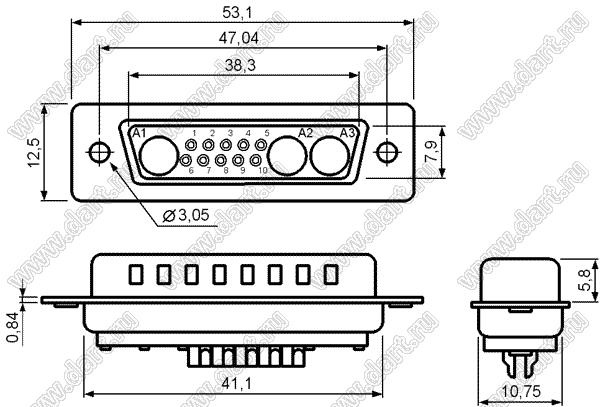 Каталог > Электронные компоненты, радиодетали > Разъёмы (соединители, переходники) > Разъемы D-SUB комбинированные > 13W3S0000100000