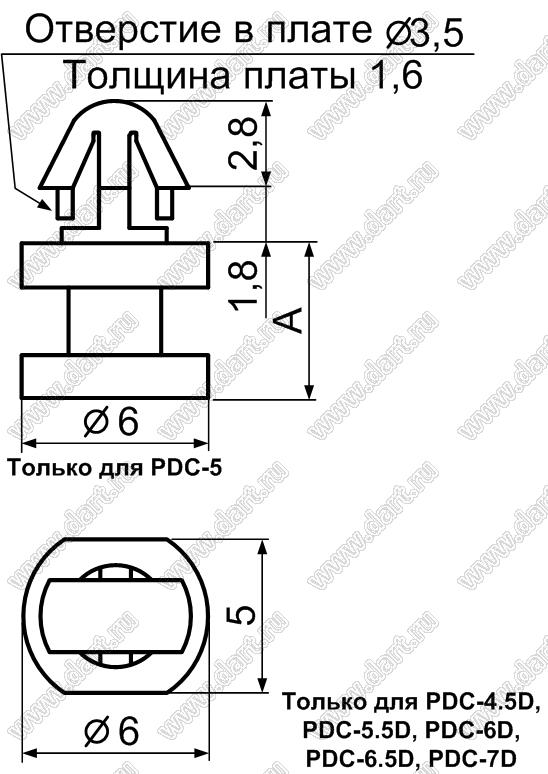 Каталог > Фурнитура для электронных устройств > Фиксаторы плат, стойки межплатные > Фиксаторы под круглое отверстие > Фиксаторы с защелкой в плату > PDC серия > PDC-6.5D