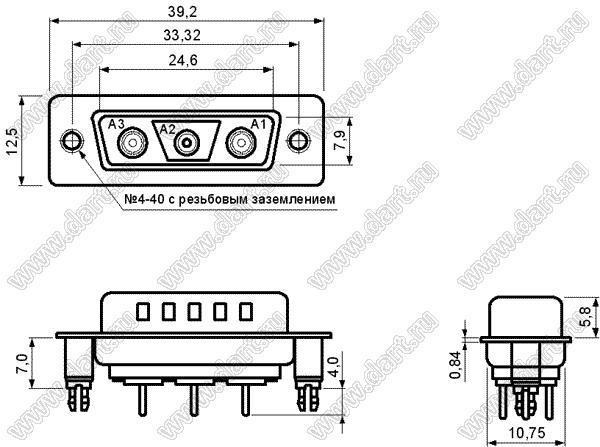 Каталог > Электронные компоненты, радиодетали > Разъёмы (соединители, переходники) > Разъемы D-SUB комбинированные > Коаксиальные прямые комбинированные D-SUB разъемы > 3W3CS0CVxy75D00