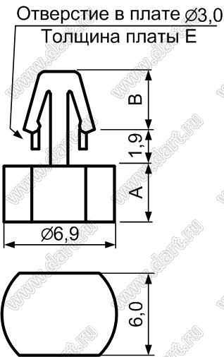 Каталог > Фурнитура для электронных устройств > Фиксаторы плат, стойки межплатные > Фиксаторы под круглое отверстие > Фиксаторы с защелкой в плату > DCB-xxD серия > DCB-3.5D