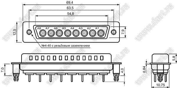 Каталог > Электронные компоненты, радиодетали > Разъёмы (соединители, переходники) > Разъемы D-SUB комбинированные > Коаксиальные прямые комбинированные D-SUB разъемы > C8W8S0CVxy75D00