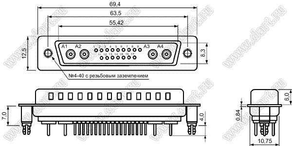 Каталог > Электронные компоненты, радиодетали > Разъёмы (соединители, переходники) > Разъемы D-SUB комбинированные > Коаксиальные прямые комбинированные D-SUB разъемы > 21W4P0CVxy75D00