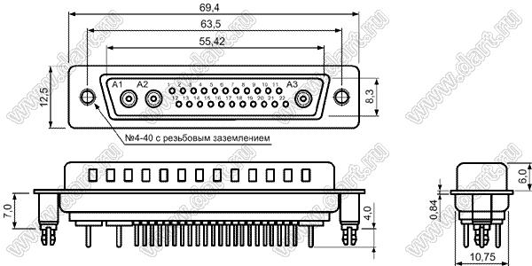 Каталог > Электронные компоненты, радиодетали > Разъёмы (соединители, переходники) > Разъемы D-SUB комбинированные > Коаксиальные прямые комбинированные D-SUB разъемы > 25W3P0CVxy50D00